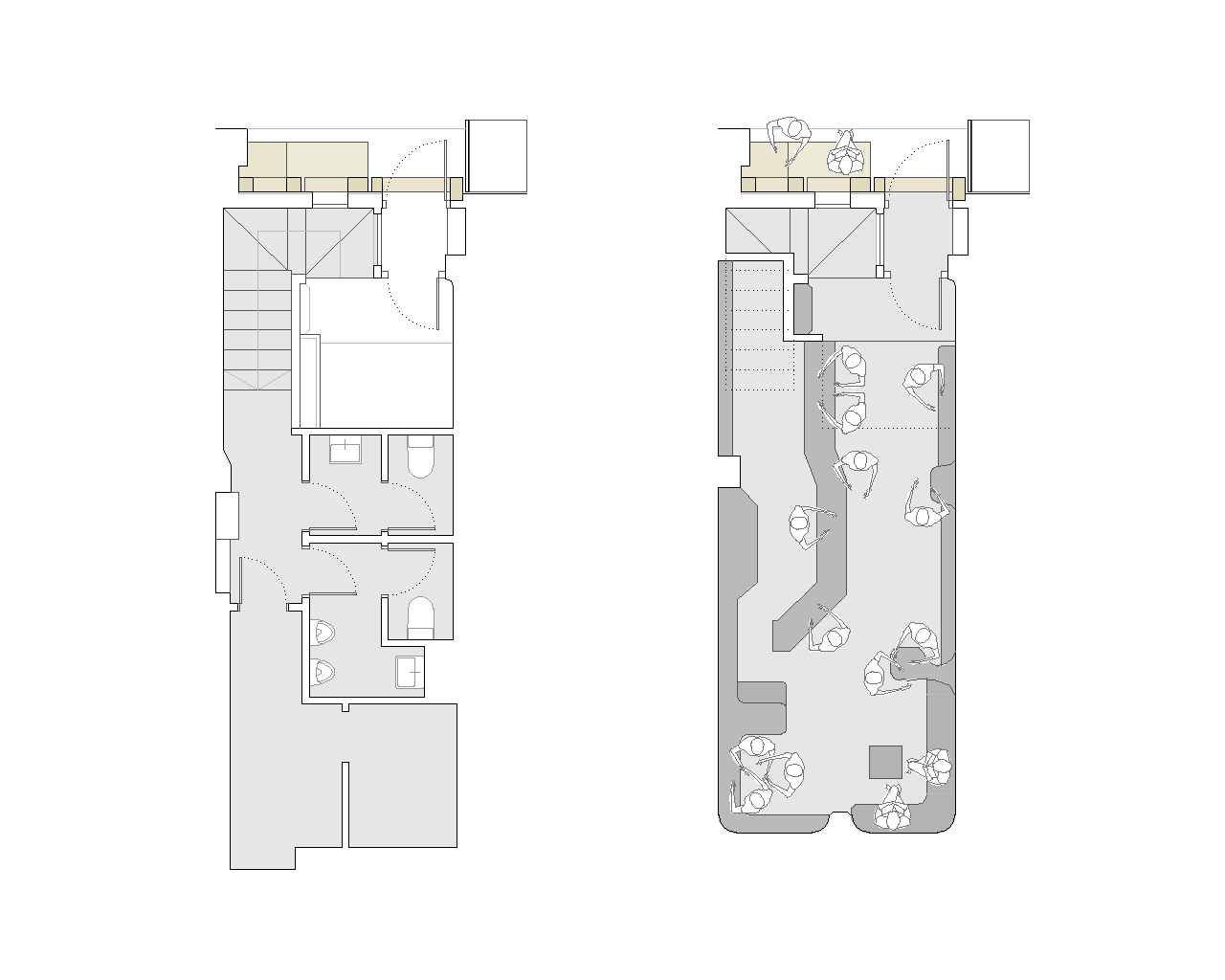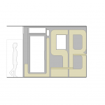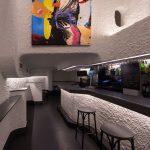 En el interior, nuestra intervención se centró en eliminar objetos y añadidos para recuperar el proyecto original. En la zona del fondo, diseñamos el final de barra, una balda y un banco corrido que siguen las líneas marcadas por Enrique Sarabia y rematan el espacio.