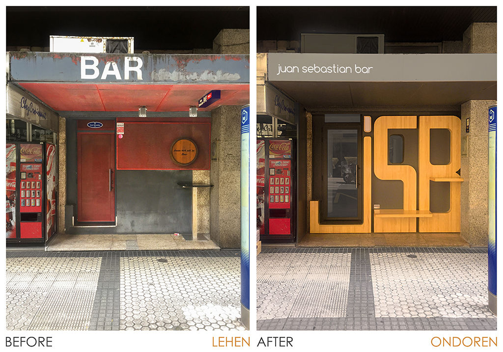 Tuvimos claro que el Juan Sebastian Bar no debía rediseñarse, sino recuperarse. El elemento que más había sufrido el paso del tiempo era la fachada, deplorablemente modificada.