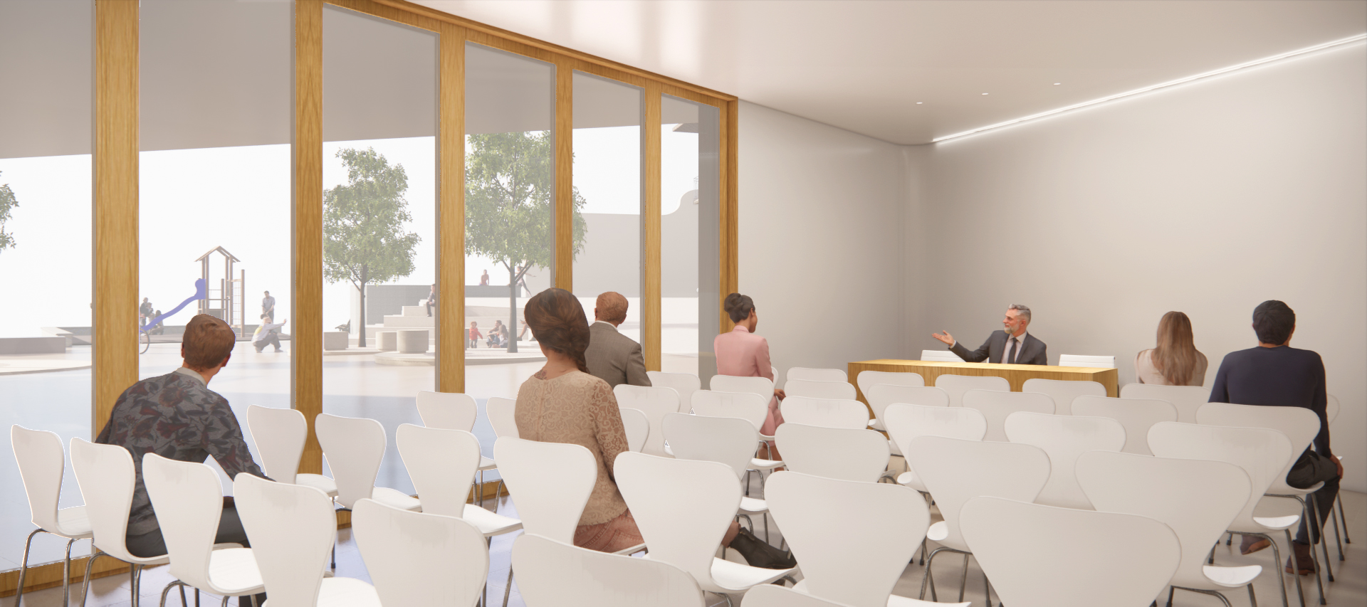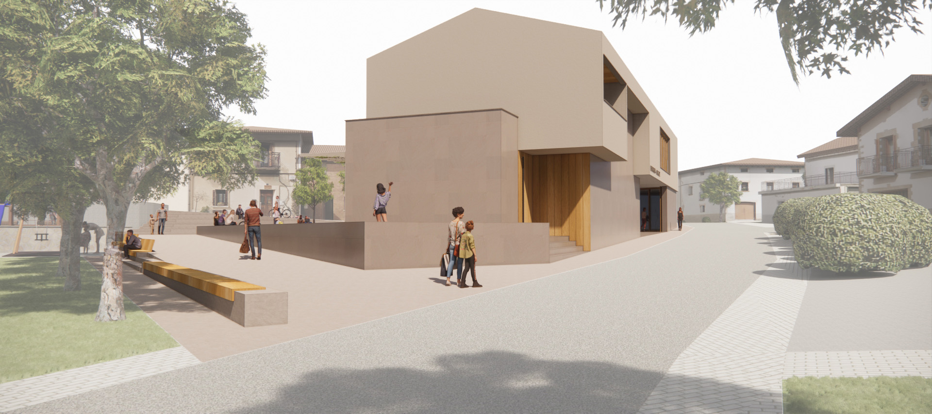 Nuestro objetivo es crear un espacio público de encuentro que funcione como punto de enlace y transición e invite a las personas a reunirse, interactuar y relajarse fomentando la cohesión urbana y mejorando la calidad de vida de los habitantes de Biurrun.