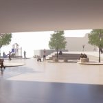 La propuesta plantea un graderío y una rampa que resuelven con eficacia la diferencia de cota de la plaza con el frontón y potencian el carácter de plaza del espacio central.
