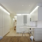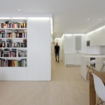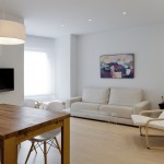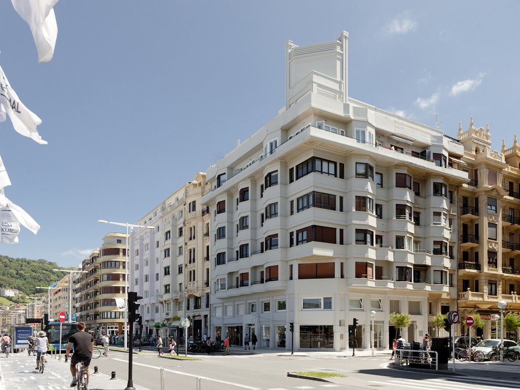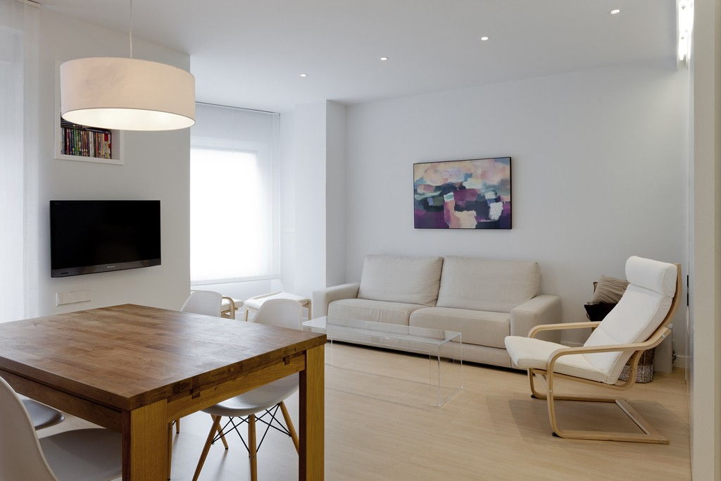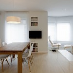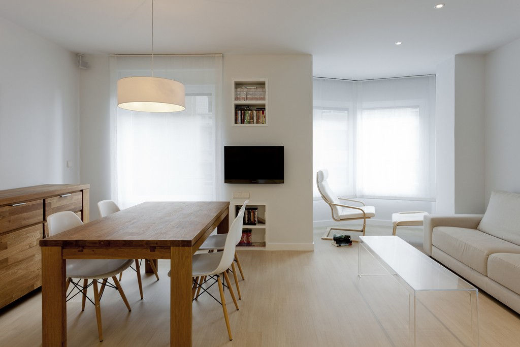 Se trata de una vivienda con distribución alargada con solamente 2 ventanas a la calle Miguel Imaz. La distribución original de la vivienda reservaba los ventanales a la calle únicamente para la zona de estar e iluminaba el resto de estancias de la vivienda a través de 4 pequeños patios de luces del edificio.