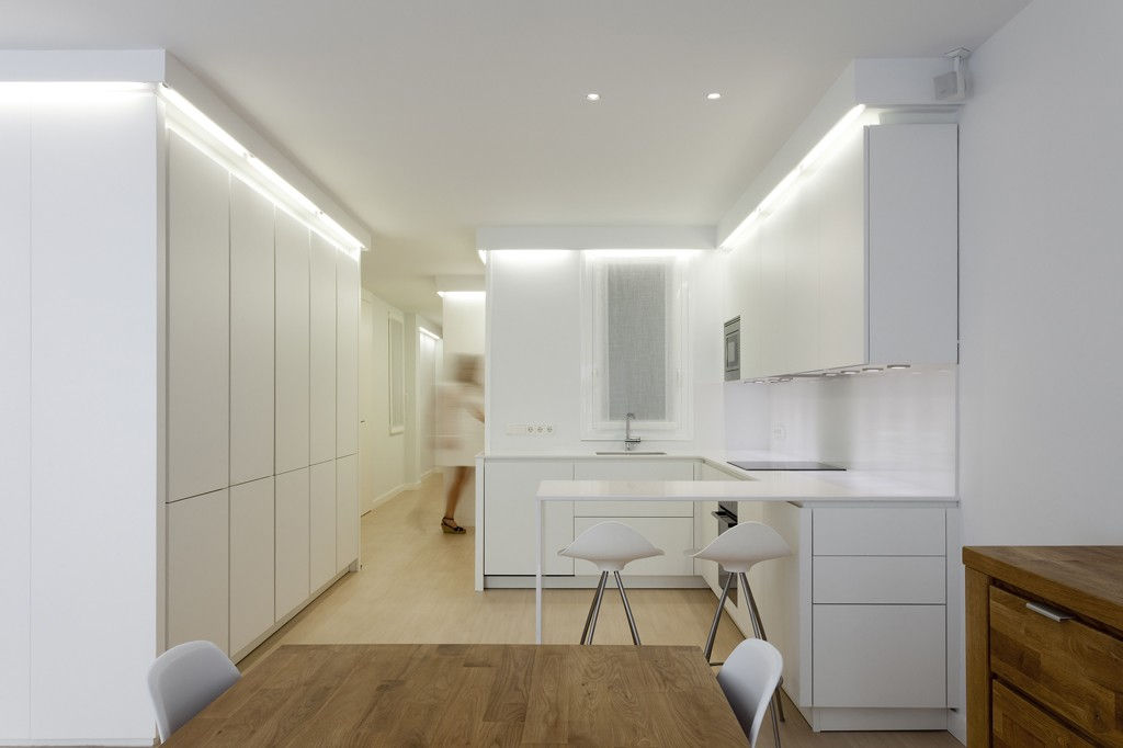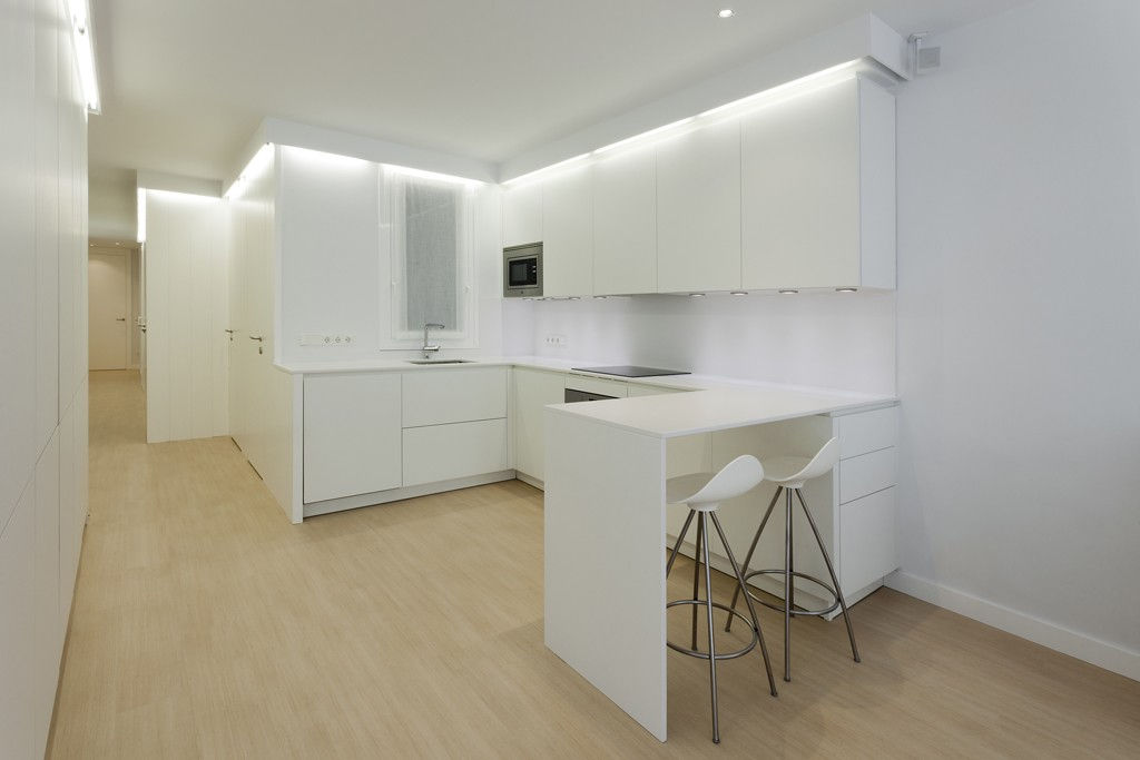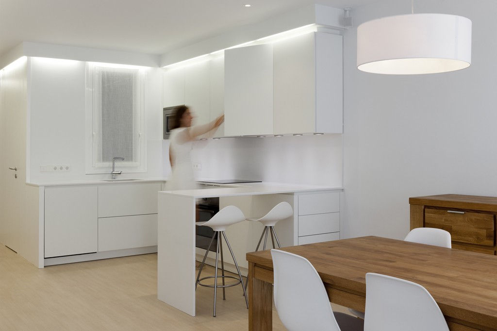 La reforma busca potenciar la relación con el exterior de la vivienda y modifica la ubicación original de la cocina acercándola a la fachada. Este sencillo cambio permite transformar el espacio y generar una zona de día abierta y luminosa.