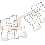 La edificabilidad de la unidad no llena el volumen máximo permitido, posibilitando plantas en “L” que permiten cinco viviendas por planta con una muy buena orientación y con las estancias principales, incluso la cocina, orientadas al exterior. Una galería abierta permitirá dotar de ventilación cruzada a la vivienda.