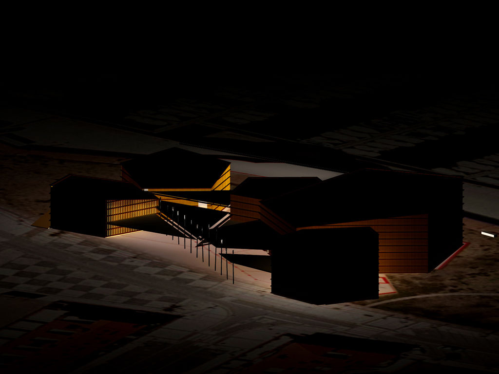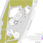 El MUSEO funciona como el par homólogo del auditorio en altura e importancia pero de menor superficie dadas sus necesidades espaciales. Esta pieza se desarrolla en tres plantas sobre rasante conectadas entre ellas por dobles alturas y, junto con el auditorio, conforma la parte Norte-Cultural más formal y expositiva.