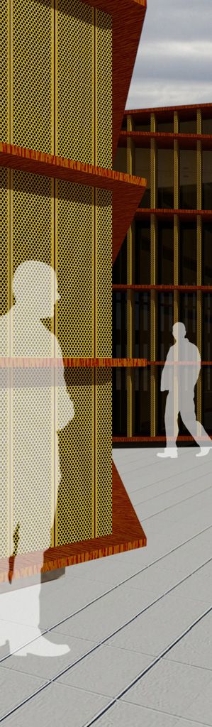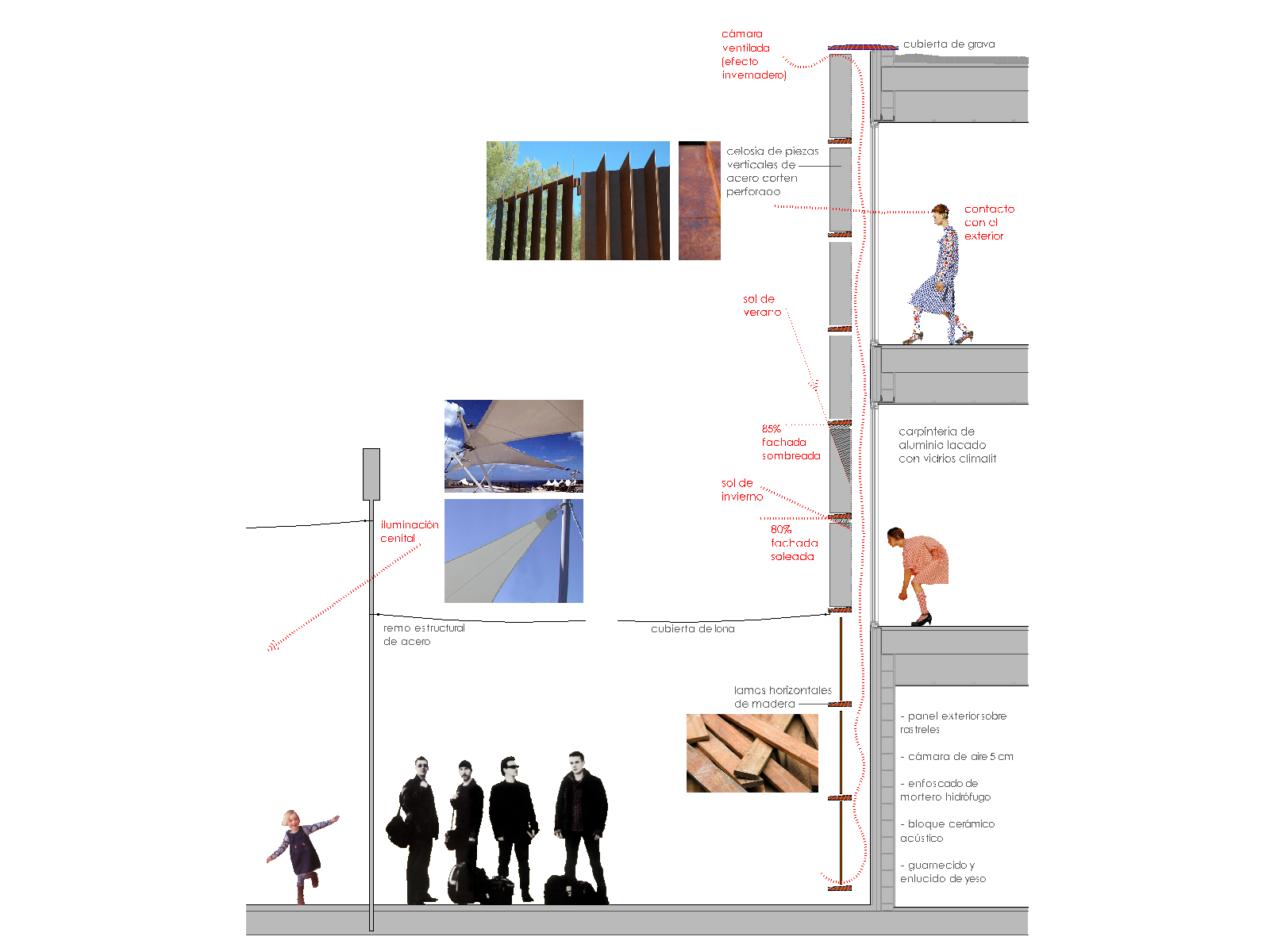 Este recinto se configura con unos cerramientos correderos y batientes capaces de modificar el espacio dependiendo de las necesidades. De esta manera, cuando el auditorio no esté en uso, su antesala se abre y pasa a formar parte de la plaza urbana.