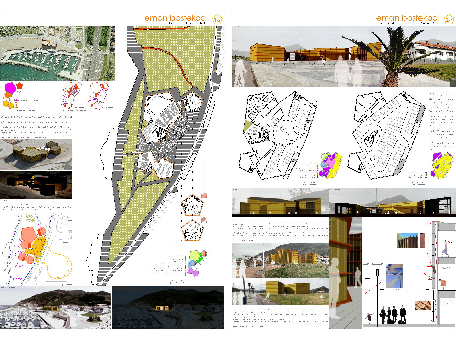 La diversidad de elementos circundantes y propios, residencias, camping, puerto deportivo, auditorio, museo…van a poner a prueba la versatilidad de la plaza y el centro Hondartza. Esta eficacia se optimiza abriendo el espacio al máximo. Por ello, el proyecto propone que el auditorio comparta con el pueblo su foyer.