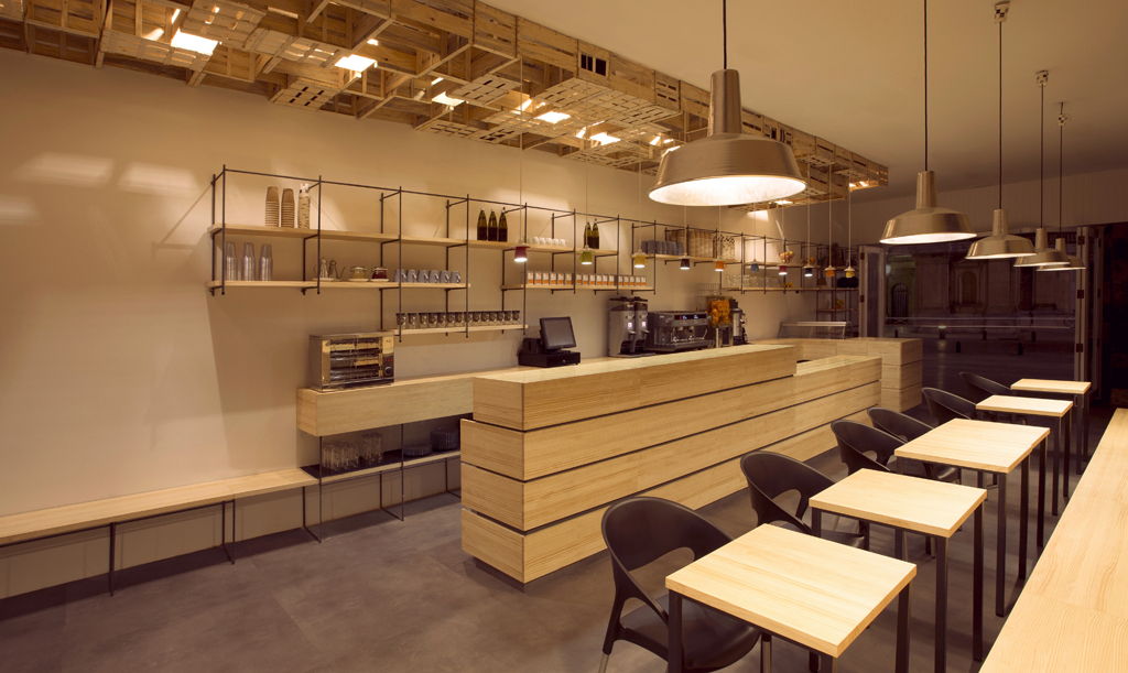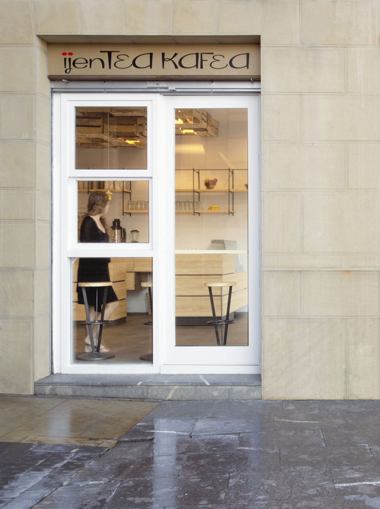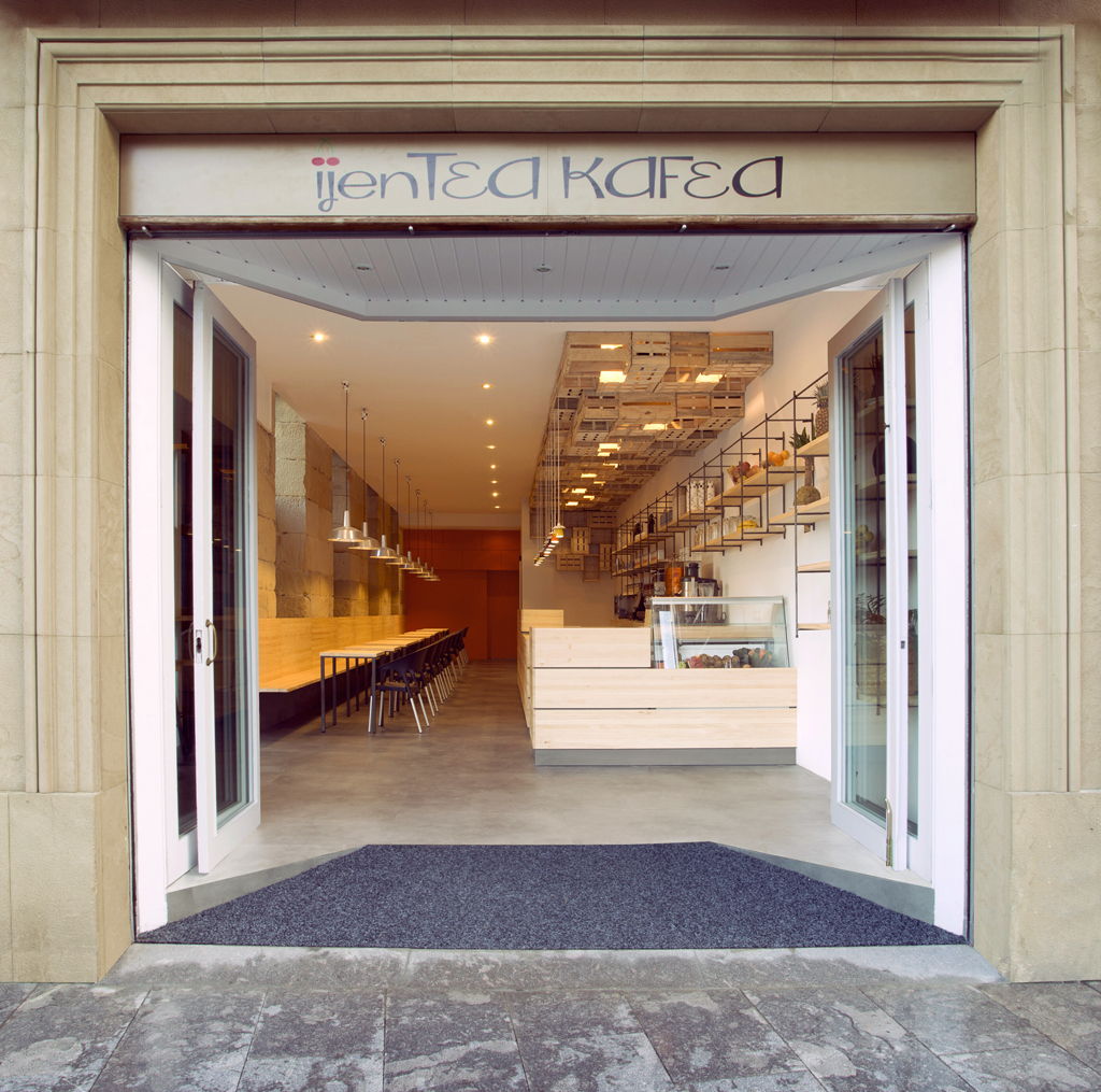 ijenTEA KAFEA no podía ser una cafetería más de la ciudad. Sus responsables querían transmitir una imagen acorde con el servicio que querían dar. Fresco, sano, natural, casero, bio, verde, ecológico…eran las palabras que utilizaban cuando describían el negocio que querían abrir. El diseño del local tenía que acompañar a esa filosofía con una arquitectura que, alejada de ornamentos innecesarios, buscara lo esencial con pocos medios pero sin renunciar a una imagen moderna, joven y natural. Y un reto añadido, conseguir el objetivo con un presupuesto muy ajustado.