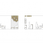 La barra se acerca a la entrada para recibir al cliente con una vitrina y un mostrador para el take-away. Se anula la salida lateral del local y se coloca una barra con taburetes que permite desayunar disfrutando de las vistas del naútico.
