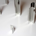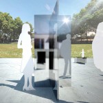 Seducidos por esos juegos de reflejos proponemos extenderlos a la explanada antesala del edificio homenajeando el valor plástico de la columna diseñada por Mies. El pilar del pabellón, forrado de deslumbrante acero cromado, se disuelve por un lado entre los brillos y reflejos, pero por otro lado, a través de su novedoso diseño en cruz, da forma al espacio, lo distribuye y lo genera a su alrededor siendo capaz de señalarlo constituyéndose en auténtico vórtice espacial.